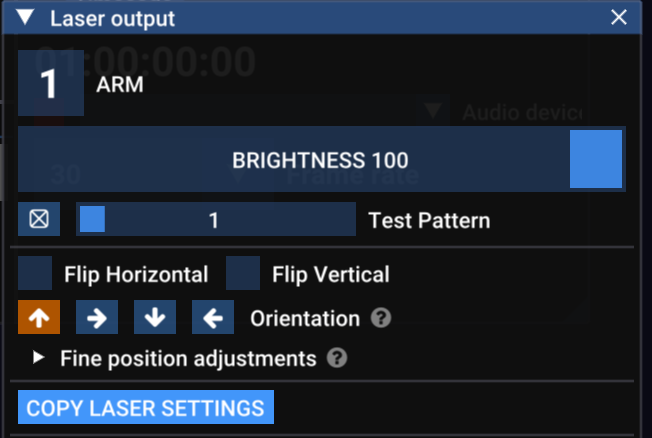 Klik på knappen COPY LASER SETTINGS i Laser Output, så åbnes et nyt panel.