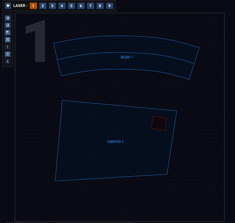 Verwende die Nummern-Buttons oben, um auszuwählen, welchen Laser du bearbeitest. Alternativ kannst du mit der Taste Tab zwischen den Lasern wechseln oder eine Zifferntaste drücken.