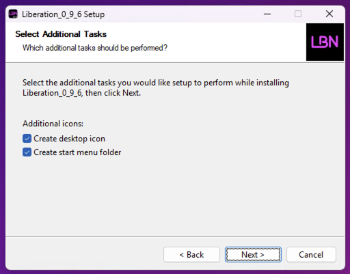 Liberation needs permission to access files and the network so Windows will probably pop up a bunch of requesters. Make sure to accept everything or Liberation may not work properly.