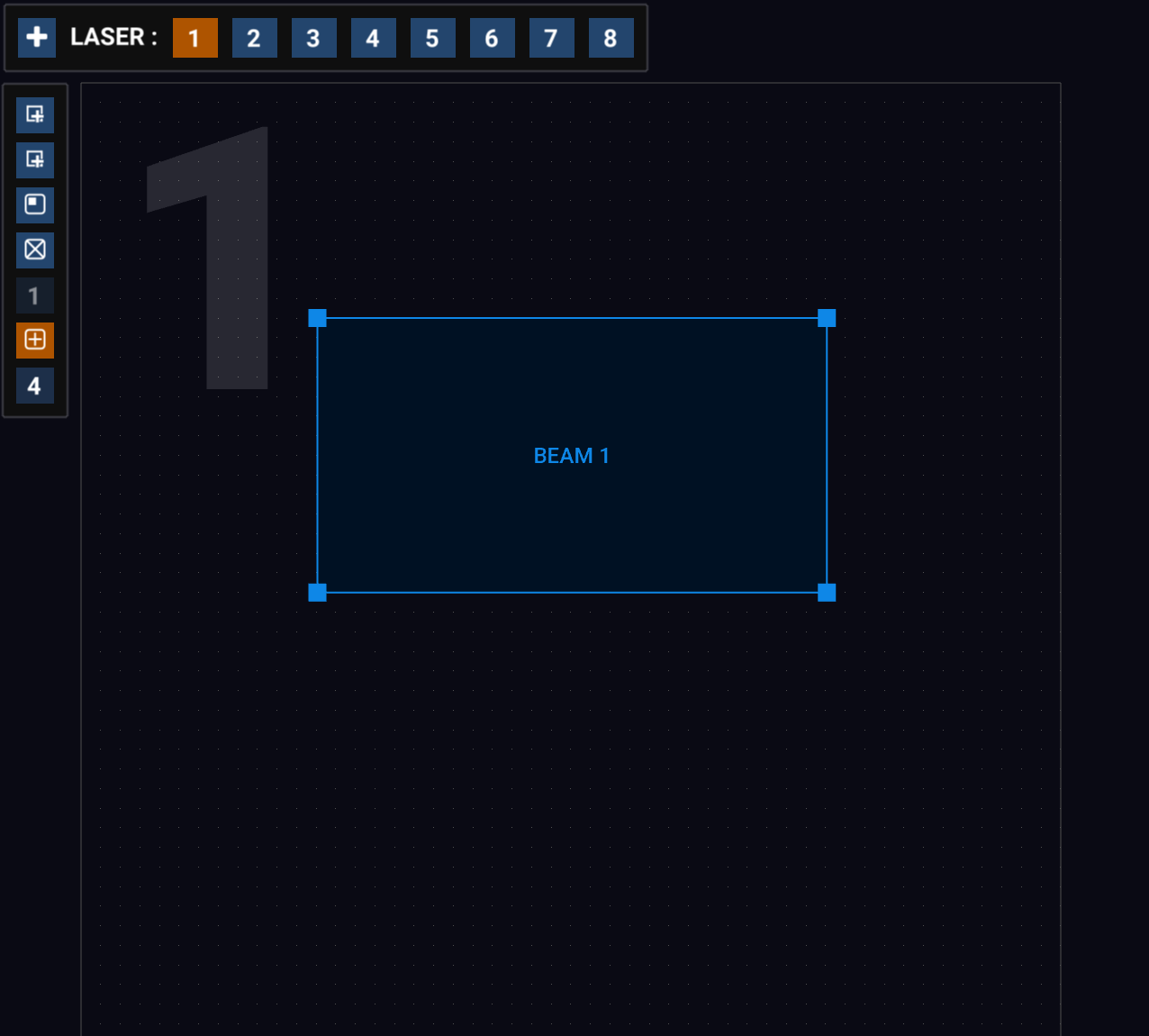 In the Laser Overview panel, click the red button on the right to delete a laser. Add a laser with the ADD LASER button at the bottom. See also Adding Removing Lasers