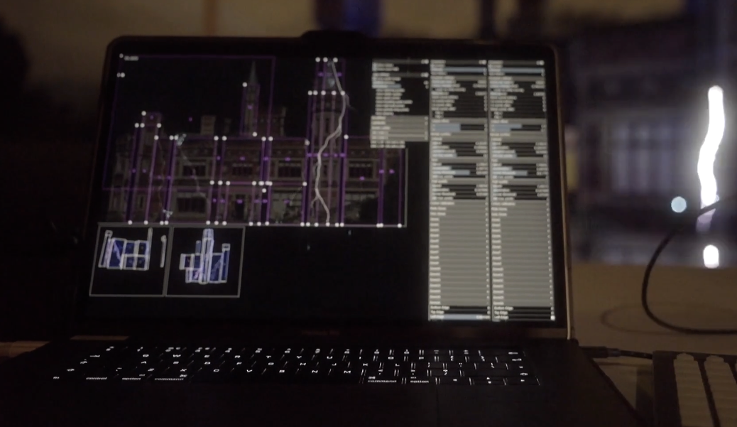 Canvas zones í frumgerð af Liberation (um 2017!) Athugaðu að bleiku rétthyrningarnir velja hvaða hluti Canvas er sýndur, og Output views fyrir neðan sýna síðan á hvaða hluta hvers leysis þessi zones fara.