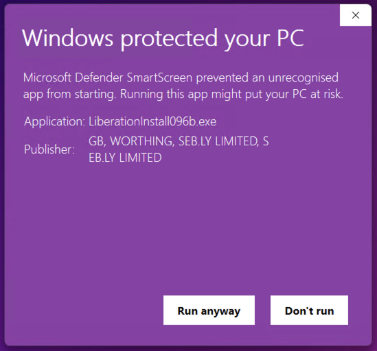 Liberation þarf leyfi til að fá aðgang að skrám og netinu, svo Windows mun líklega birta nokkra beiðniglugga. Gakktu úr skugga um að samþykkja allt, annars gæti Liberation ekki virkað rétt.