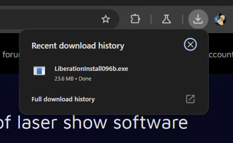 Download latest for Windows를 클릭합니다(버전 번호는 달라질 수 있음). 그러면 다운로드 표시기가 진행 상황을 보여줍니다(보통 오른쪽 위에 표시되며, 스크린샷은 Chrome 기준입니다). 완료되면 다운로드 폴더를 열고 다운로드한 설치 파일을 클릭합니다.