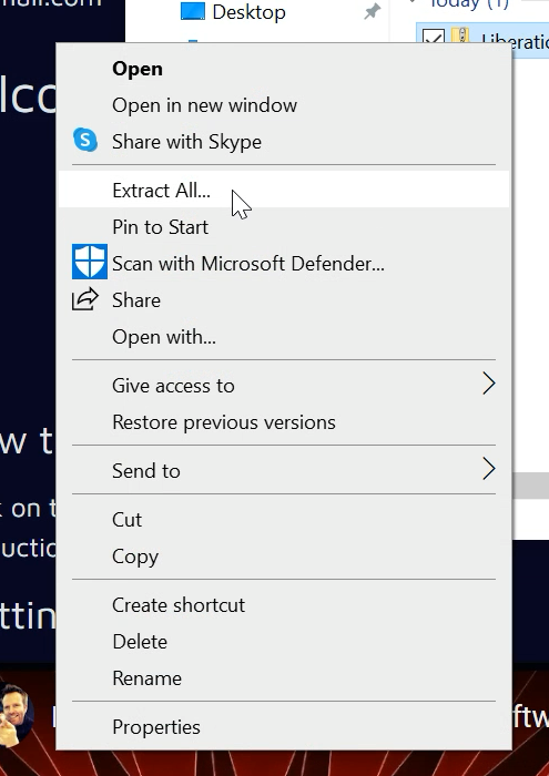 После завершения распаковки Windows покажет установочный файл. Дважды щёлкните Liberation.exe, чтобы запустить приложение.