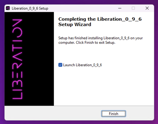 Installationsprogrammet är klart! Klicka på Finish för att stänga det och starta Liberation.