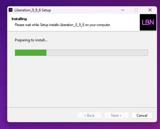 Liberation’ın kurulması için kısa bir süre bekleyin.